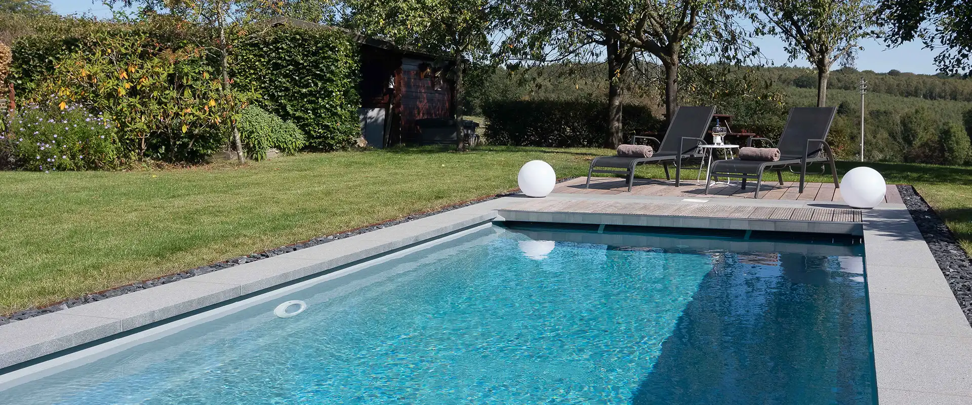 Idéal pour les petits jardins, la Fiji dispose d’un escalier d’accès ainsi que d’une plage de relaxation.
